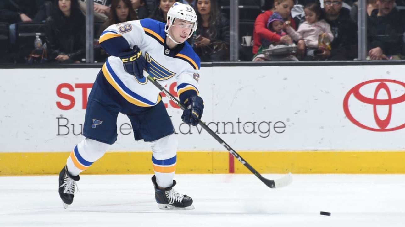 Le défenseur de 24 ans a amassé 20 points en 43 matchs dans l'uniforme des Blues l'an dernier.