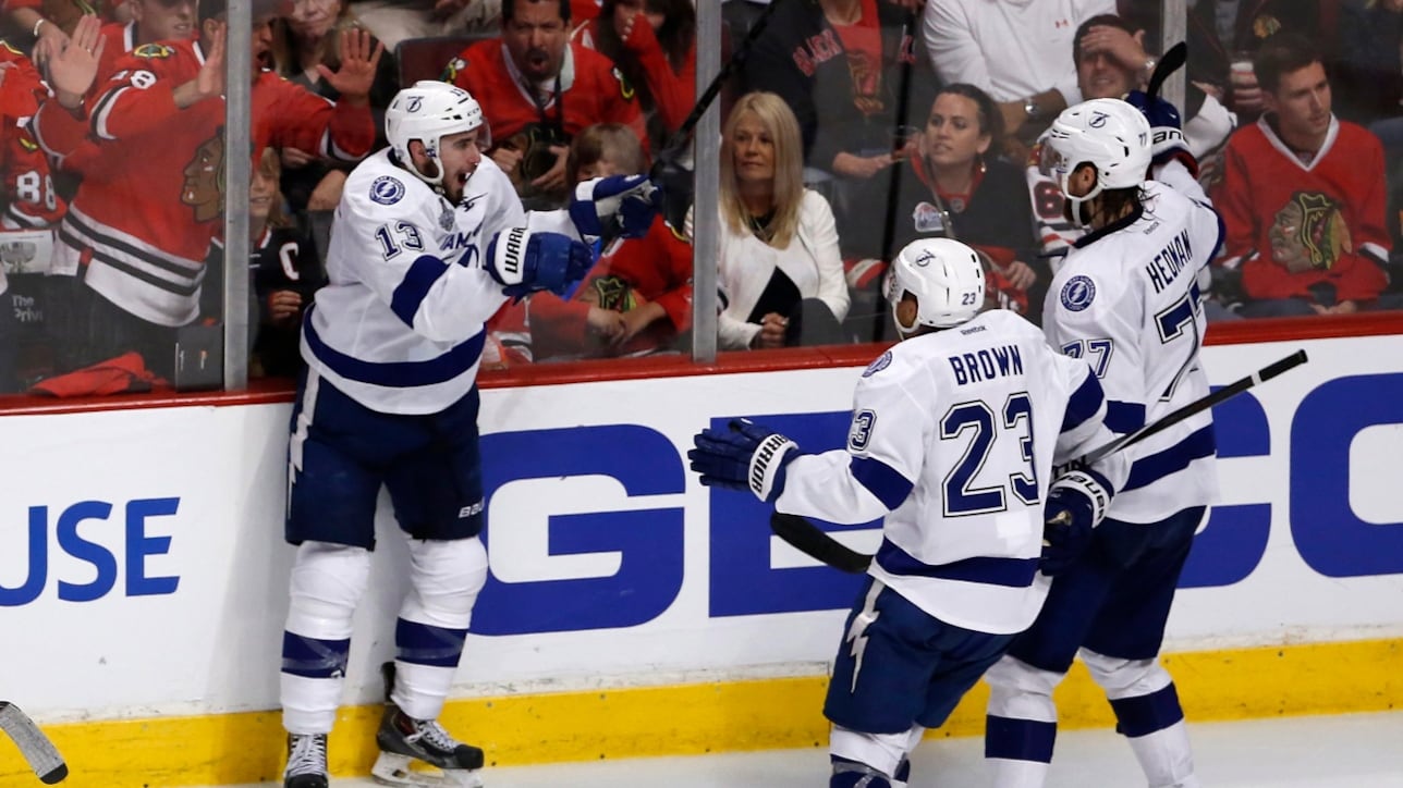 L'avance a toutefois été de courte durée pour les Hawks, qui sont retournés à la case départ 13 secondes plus tard. Palat a sauté sur une rondelle libre à l'embouchure droite du filet, et il l'a poussée au fond de celui-ci, tout juste entre le patin de Crawford et le poteau. Les partisans des Hawks célébraient encore le but de Saad lorsque Palat a enfilé l'aiguille.