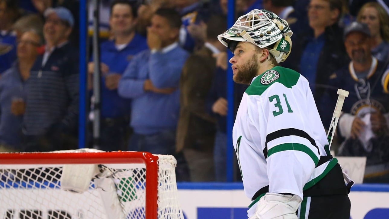 Le gardien finlandais a été chassé du match à la suite d'un but spectaculaire marqué par Troy Brouwer qui a mystifié le gardien des Stars après s'être moqué du défenseur Kris Russell acquis par Dallas à la date limite des transactions justement pour solidifier une défensive qui avait cruellement besoin de renfort.