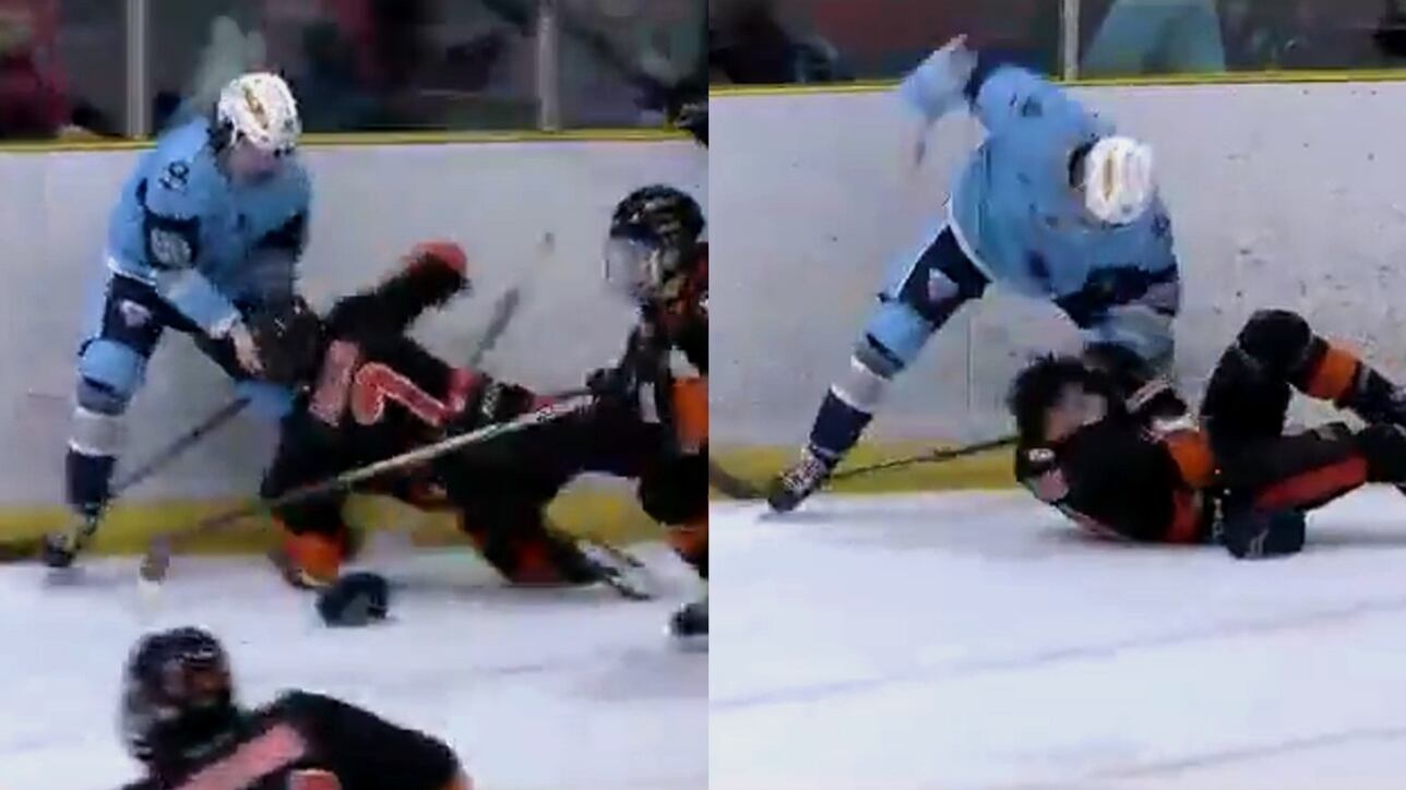 Aydan Doyle des Sailors de Port Colborne a arraché le casque d'un adversaire des Meteors de Fort Erie pour ensuite le tabasser.