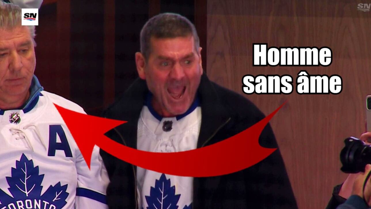 Dans l'image à l'horizontale, on peut voir le père de Mitch Marner se lever, mais être sérieux comme... comme quelqu'un qui est beaucoup trop sérieux pour rien.