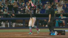 Lopez catapulte la balle au champ centreOpens in new window