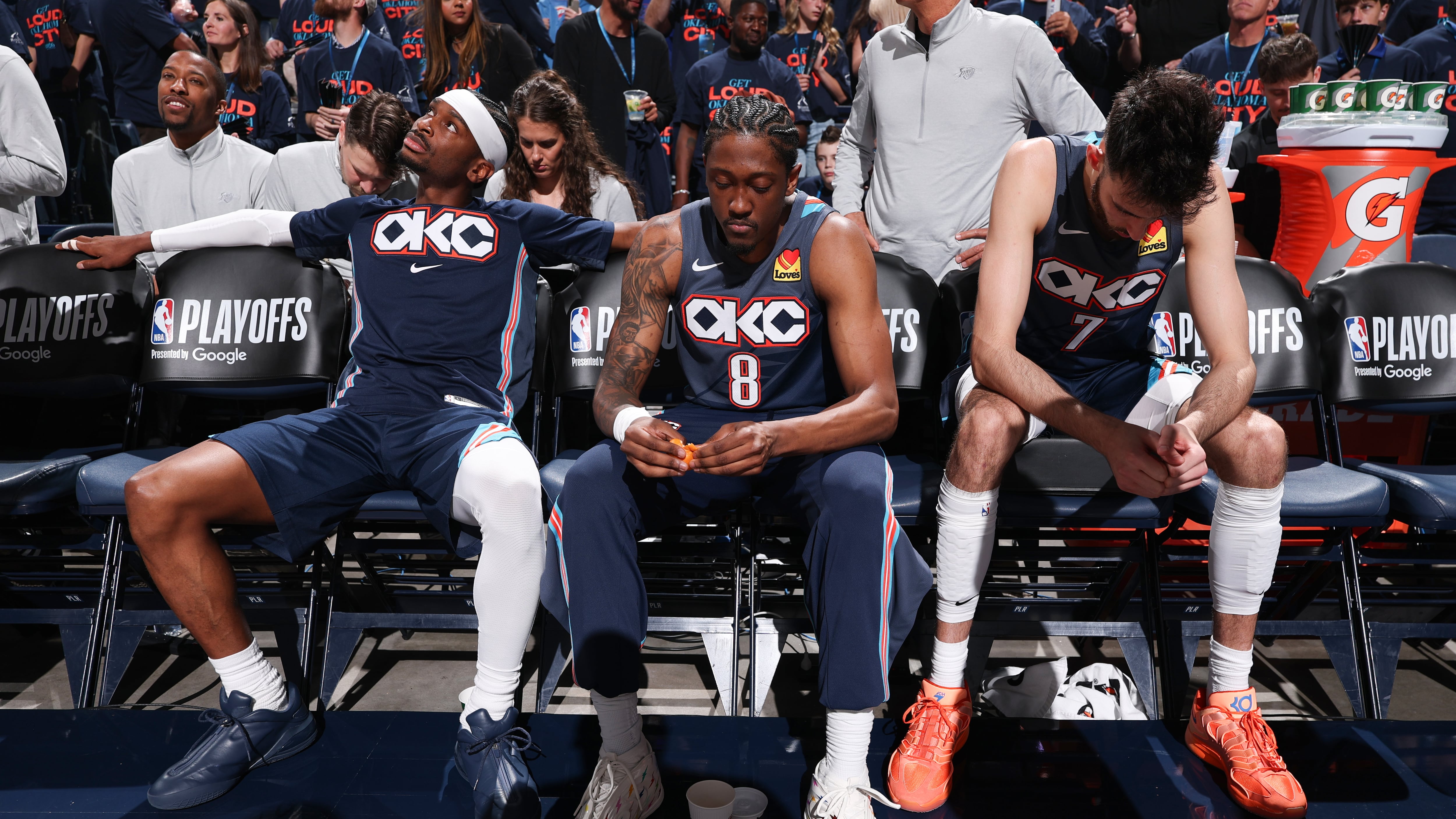 Sa blessure est survenue lors du troisième quart de la rencontre de mercredi, remportée par le Thunder par la marque de 120 à 107, qui mène la série 2 à 0.
