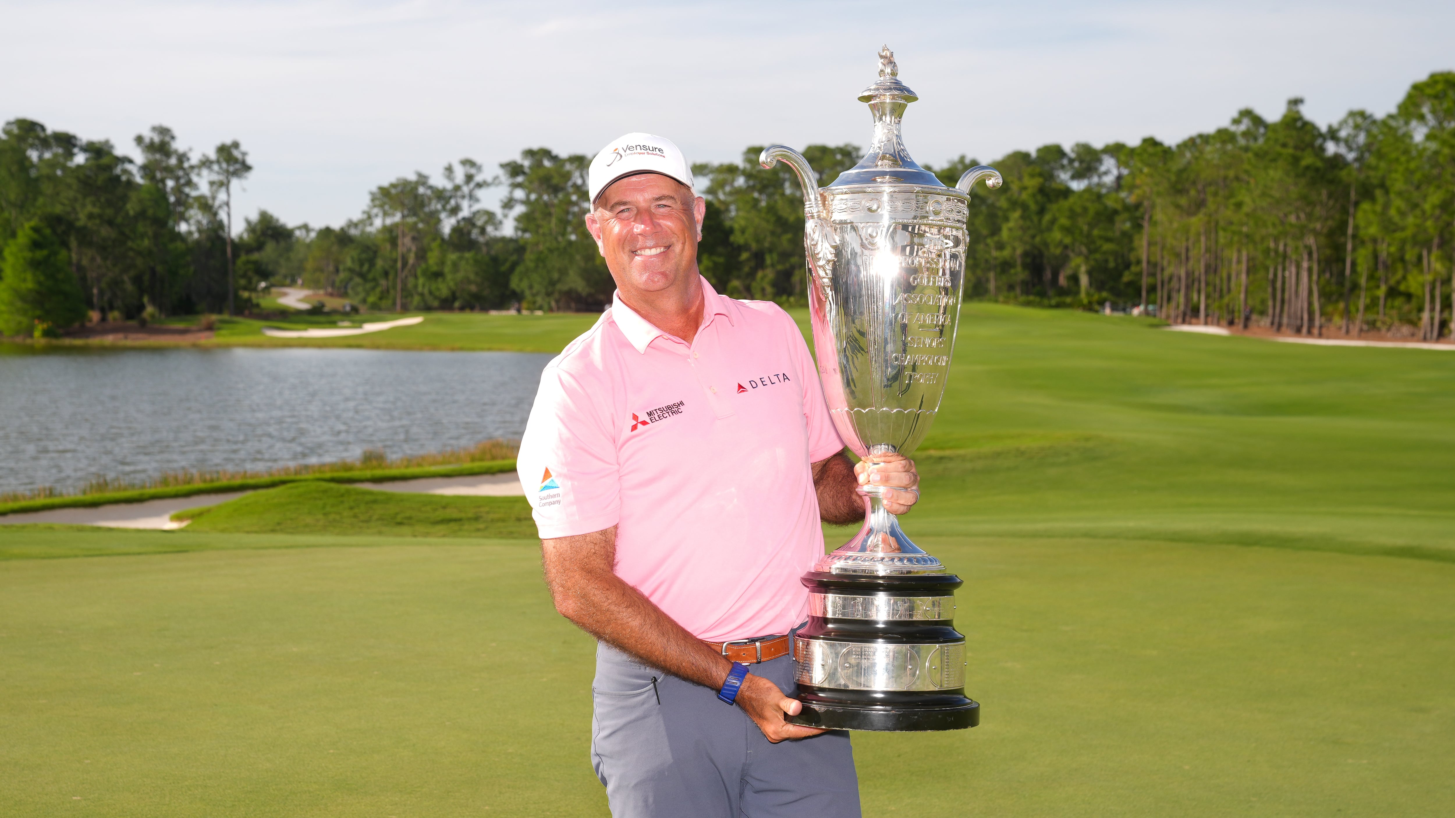 Stewart Cink s’est détaché du peloton grâce à une série de coups époustouflants à mi-parcours dimanche, terminant avec un pointage de 63 (-9) pour s’imposer avec six coups d’avance au Championnat sénior de la PGA, son premier tournoi majeur chez les séniors et sa troisième victoire de l’année sur le circuit des Champions.