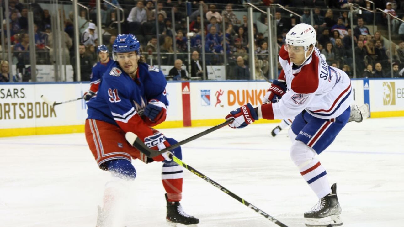 L'attaquant des Canadiens de Montréal Juraj Slafkovsky n'a pas été en mesure de terminer la rencontre devant les Rangers de New York, dimanche.