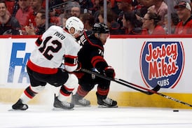 Avant même la mise en jeu initiale, le capitaine des Canes Jordan Staal a invité le capitaine des Sens Brady Tkachuk à danser. Fidèle à sa réputation, le plus jeune des frères Tkachuk a accepté et les deux hommes ont jeté les gants dès les premiers instants du match.