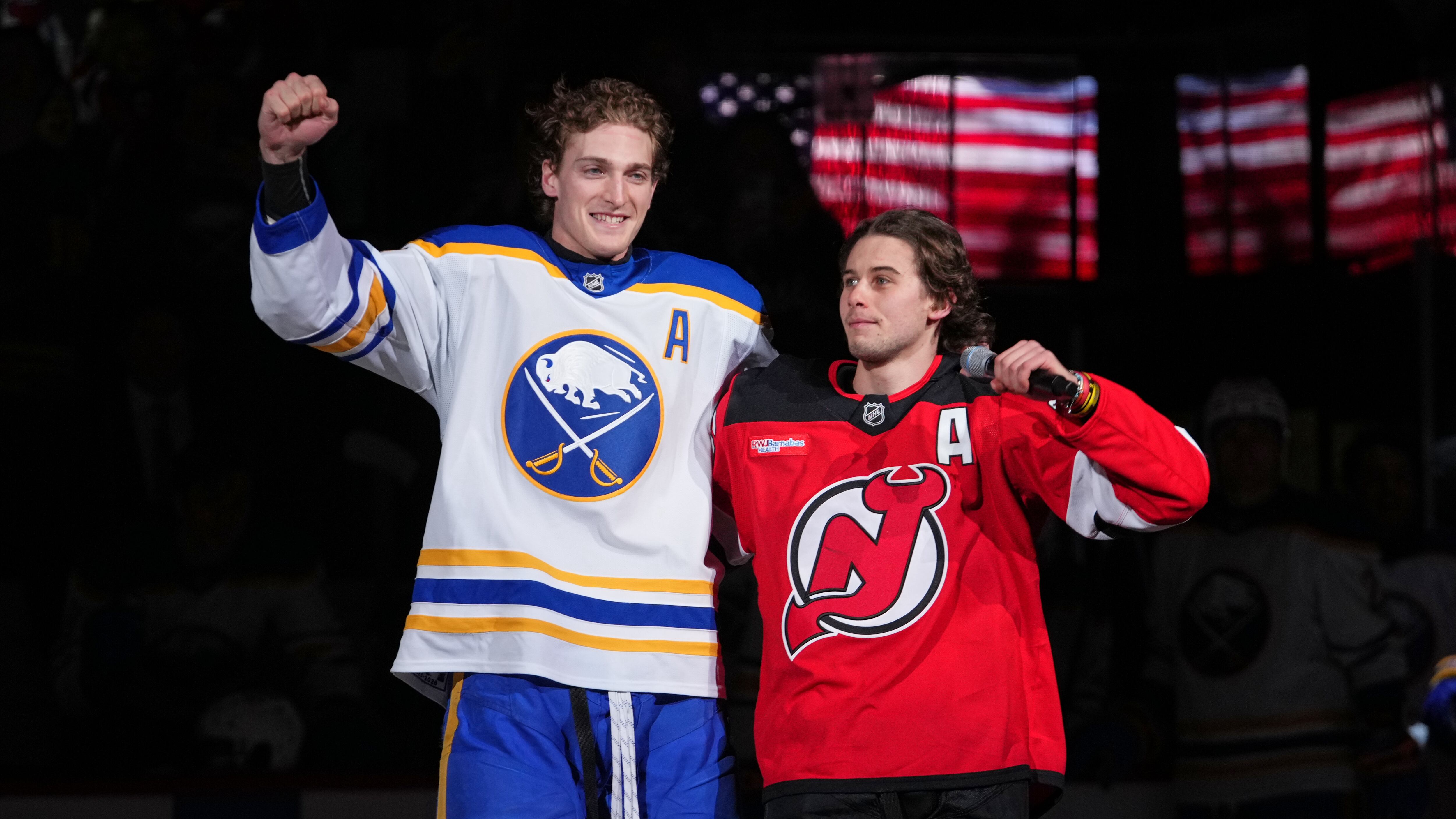 Avant le début de la rencontre disputée au Prudential Center, Hughes a été salué par les partisans après la victoire devant le Canada en finale du tournoi olympique. L’attaquant des Devils a rejoint le banc des Sabres et il a amené Thompson au centre de la patinoire pour qu’il reçoive aussi la vague d’amour des partisans.
