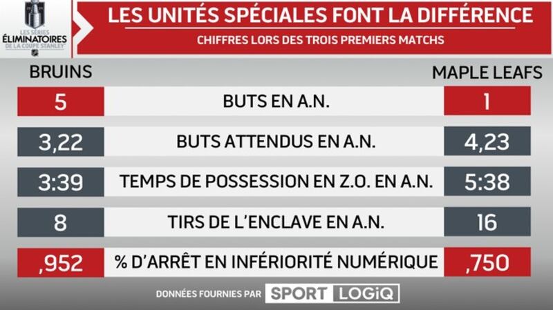 En séries, les unités spéciales sont plus importantes que jamais. Le jeu devient plus serré et les arbitres peuvent décider d'avaler leur sifflet à tout moment. Chaque punition peut faire chavirer un match. Une pénalité écoulée peut donner un second souffle à une équipe, et un but en avantage numérique peut venir clouer le cercueil de ton adversaire. Jusqu'à présent, les Bruins dominent le duel des unités spéciales.