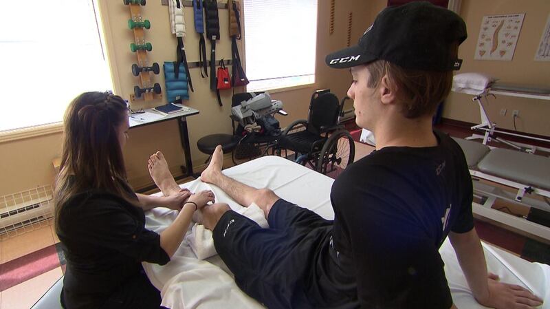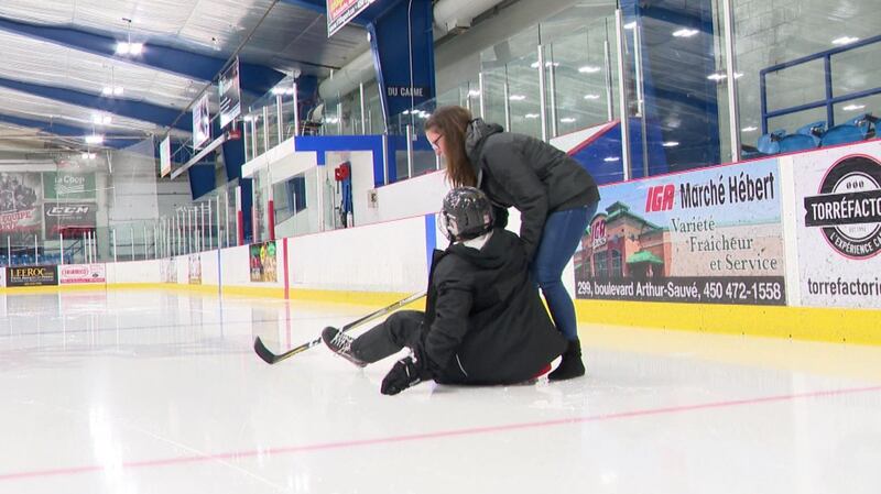 « Avant je portais des patins plus souvent que je portais mes souliers. Même si ç'a été difficile de faire entrer mes orthèses, j'ai réussi à mettre les patins aujourd'hui. C'est du bonus pour moi. On ne savait même pas si j'allais pouvoir remarcher et, là, je patine. »
