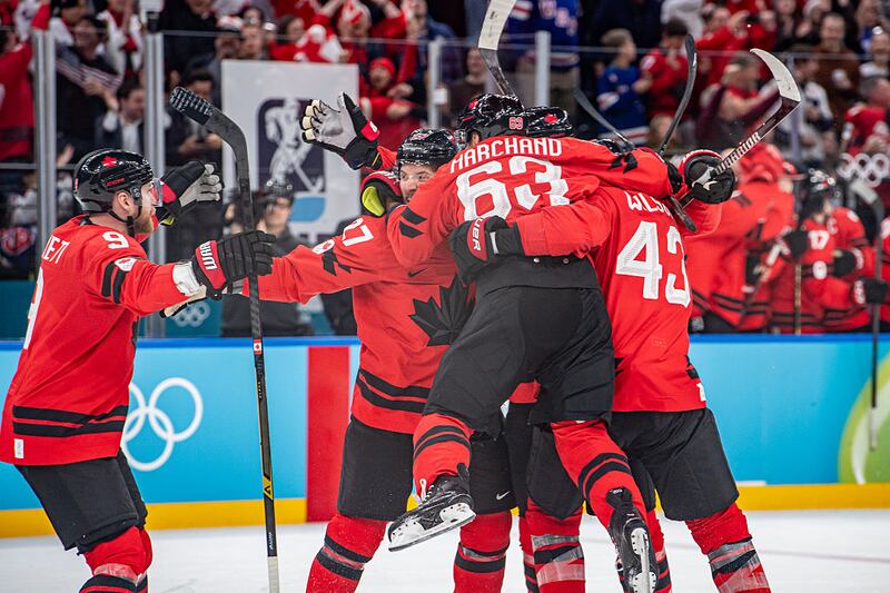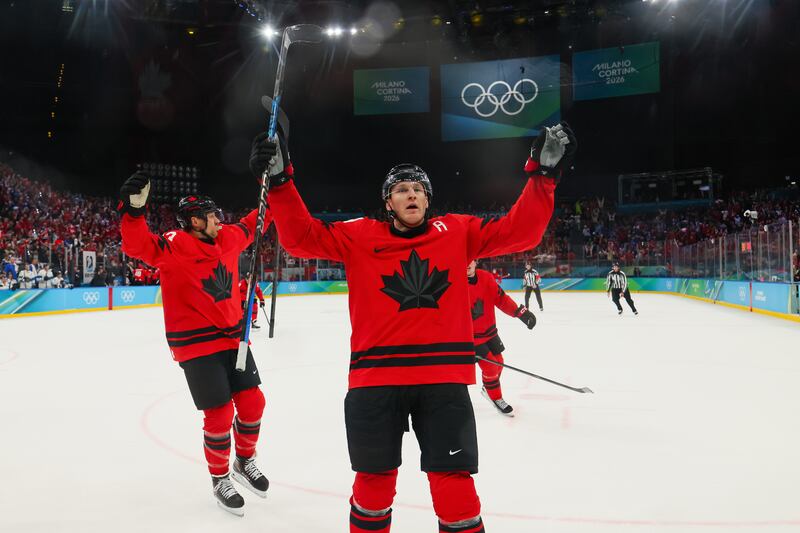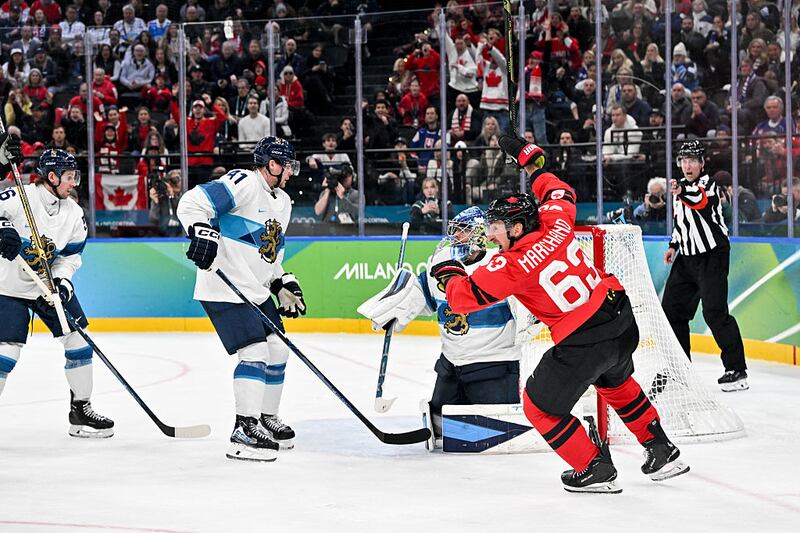 Brad Marchand Brad Marchand (Eurasia Sport Images/Getty Images) Des joueurs du Canada célèbrent un but Des joueurs du Canada célèbrent un but (NurPhoto/NurPhoto via Getty Images) Shea Theodore Shea Theodore (Nathan Denette/THE CANADIAN PRESS) Shea Theodore et le Canada Shea Theodore et le Canada (RvS.Media/Monika Majer/Getty Images) Nathan MacKinnon MILAN, ITALY - FEBRUARY 20: Nathan MacKinnon #29 of Team Canada celebrates scoring a goal in the third period during the Men's Semifinals Playoff match between Canada and Finland on day fourteen of the Milano Cortina 2026 Winter Olympic games at Milano Santagiulia Ice Hockey Arena on February 20, 2026 in Milan, Italy. (Photo by Bruce Bennett/Getty Images) (Bruce Bennett/Getty Images) Connor McDavid Connor McDavid (Xavier Laine/Getty Images) Jack Hughes Jack Hughes (NurPhoto/NurPhoto via Getty Images) Brady Tkachuk Brady Tkachuk (Petr David Josek/AP) Valérie Maltais Valérie Maltais (PIERO CRUCIATTI/AFP via Getty Images) Valérie Maltais Valérie Maltais (Joosep Martinson/Getty Images) Antoinette Rijpma-de Jong, Ragne Wiklund et Valérie Maltais Antoinette Rijpma-de Jong, Ragne Wiklund et Valérie Maltais (Ben Curtis/AP) Brendan MacKay Brendan MacKay (Sean Kilpatrick/The Canadian Press) Brendan MacKay Brendan MacKay (JEFF PACHOUD/AFP via Getty Images) Brendan Mackay Brendan Mackay (Sean Kilpatrick/The Canadian Press) Courtney Sarault Courtney Sarault (Natacha Pisarenko/AP) Courtney Sarault Courtney Sarault (GABRIEL BOUYS/AFP via Getty Images) William Dandjinou William Dandjinou (DARRYL DYCK/THE CANADIAN PRESS) Lewis Irving Lewis Irving (Mark Blinch/THE CANADIAN PRESS) Hunter Hess Hunter Hess (Abbie Parr/AP) Johannes Dale-Skjevdal Johannes Dale-Skjevdal (David J. Phillip/AP)