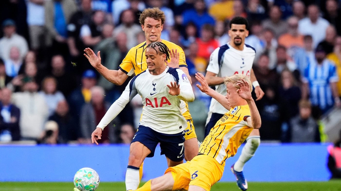 La façon dont ce deuxième but a été concédé (Georginio Rutter, 90+5), après un mauvais contrôle de l’ancien Lensois Kevin Danso dans sa surface de réparation, a tout dit de la nervosité des Spurs, à l’image de leur nouvel entraîneur, lui-même averti pour être sorti de sa zone technique quelques minutes plus tôt.