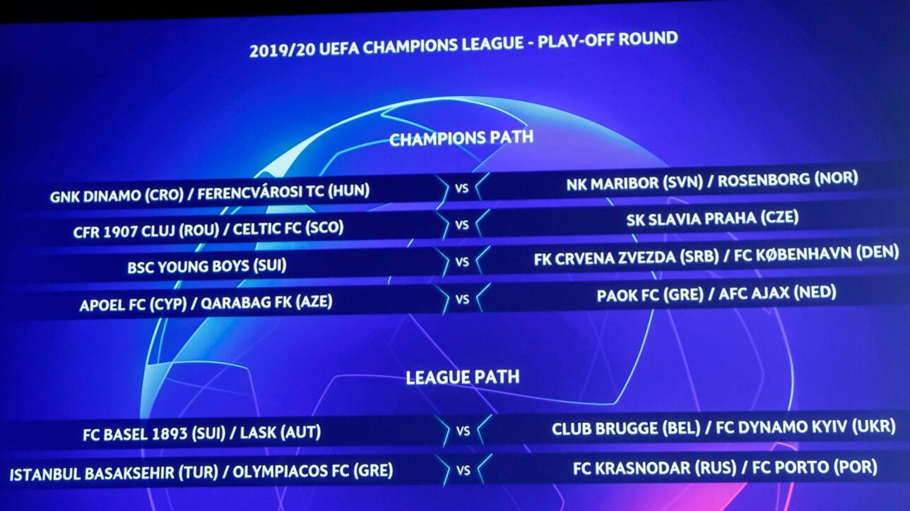 Le Slavia Prague, champion tchèque, affrontera Cluj ou le Celtic, tandis que le champion suisse affrontera soit le Red Star Belgrade ou le FC Copenhague.